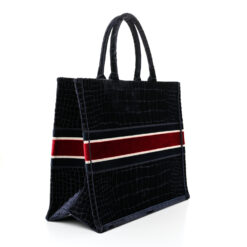Christian Dior Blue Velvet Mizza Embroidered Large Croc Book Tote Bag