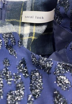 SACAI Blue Shimmer High Neck Plaid Long Sleeve Dress Size 1 Japan