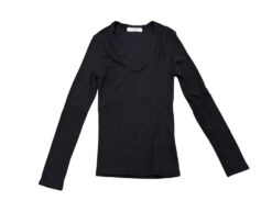 PERFECT WHITE TEE Robyn Black Ribbed Scoop Neck Long Sleeve Top XS