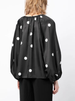 Cynthia Rowley NWT Alice Polka Dot Silk Puff Sleeve Top Blouse XS Black NEW