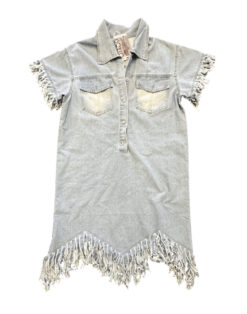OYROSY NWT Blue Denim Fringe Runway Mini Shirt Dress Size Medium