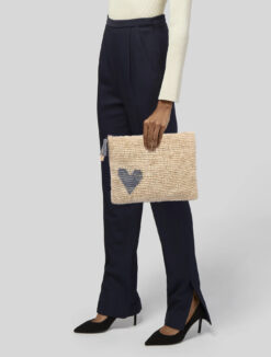 AERIN NWT Heart Raffia Large Clutch Bag Handbag NEW