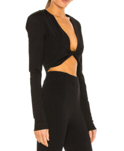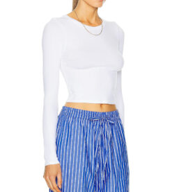 Enza Costa Women’s Silk Rib Cropped Long Sleeve Crew Top Blouse XS White