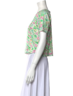Love Shack Fancy Womens Calix Floral Crew Neck Short Sleeve Cropped Shirt Top XS