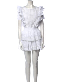 Love Shack Fancy Women’s Natasha Crew Neck Ruffle Short Sleeve Mini Dress XS
