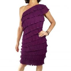 Tadashi Shoji Purple Plisse Pleated Chiffon One Shoulder Cocktail Dress Size 8