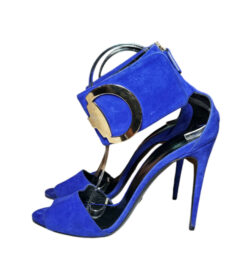 Gucci Ursula Blue Suede Maxi Horsebit Ankle Strap Heels Sandals Pumps 40
