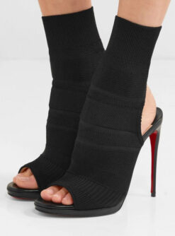 Christian Louboutin NIB Cheminene 120 Black Open Toe Pull On Sock Boots Heels 39.5