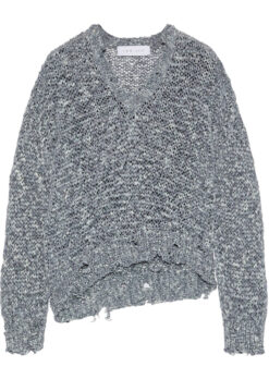 IRO NISK GRAY V NECK OPEN KNIT DISTRESSED PULLOVER SWEATER SIZE SMALL