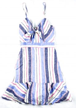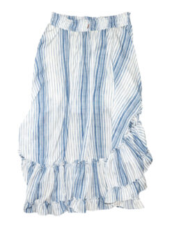 Misa Womens Striped Linen Tiered Ruffle Midi Maxi Skirt Medium Blue
