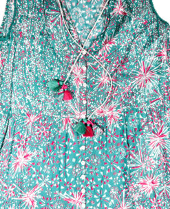 Poupette St. Barth Floral Print Pom Tassel V-Neck Maxi Dress Size XS
