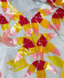 Taj by Sabrina Crippa Floral Paillette Fringe Kaftan Dress Size Small