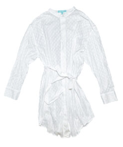 Melissa Odabash Brandi White Cotton Jacquard Long Sleeve Mini Shirt Dress Medium