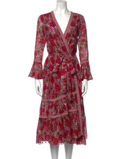 Tanya Taylor NWT Dorothy Floral Silk V-Neck Puff Sleeve Wrap Midi Dress Size 2