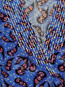 Taj Sabrina Crippa Blue Floral Print Beaded V-Neck Long Sleeve Mini Dress Small