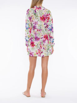 Taj Sabrina Crippa Covina White Apple Blossom Floral Long Sleeve Mini Dress