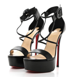 Christian Louboutin Choca 130 Black Leather Ankle Strap Platform Heels Sandals 41