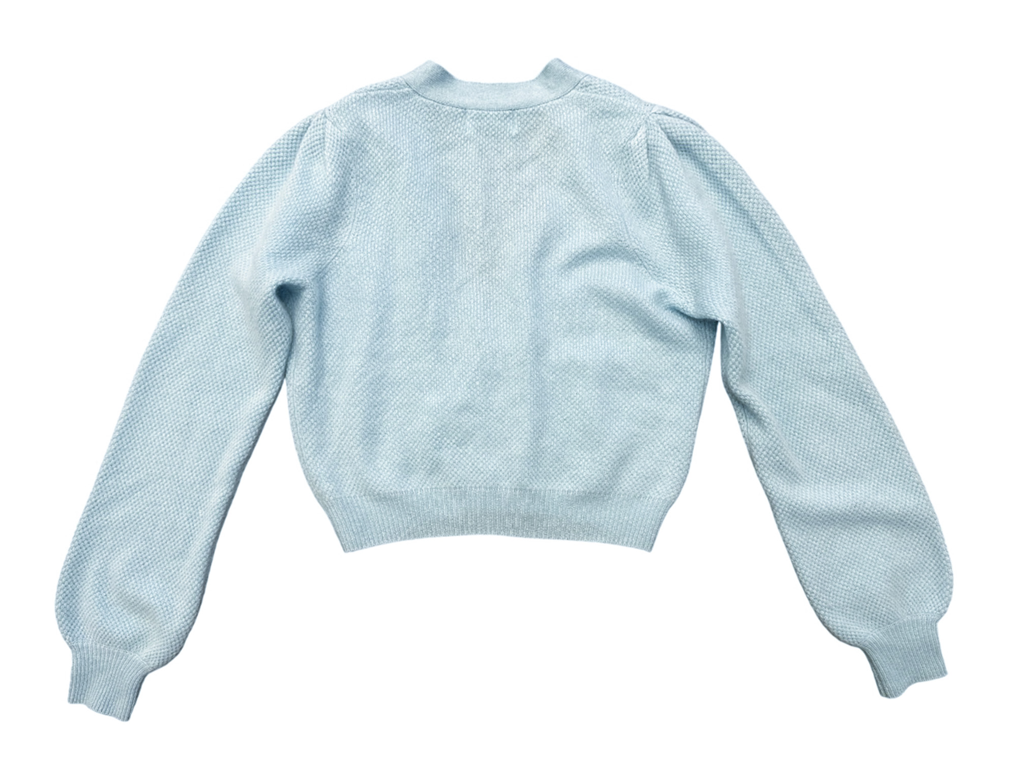- Style: Blue Cashmere Knit V-Neck Cropped Cardigan Sweater