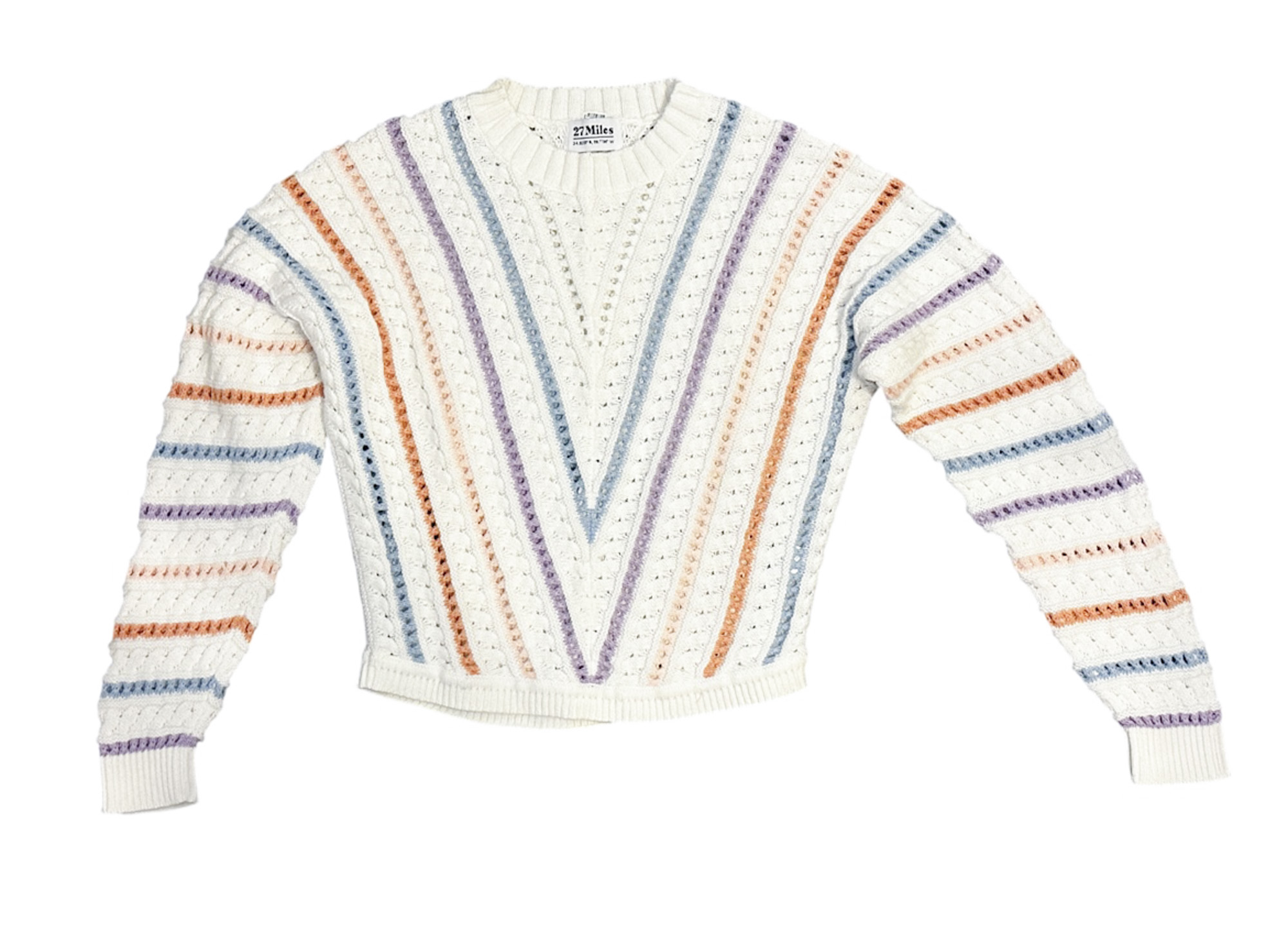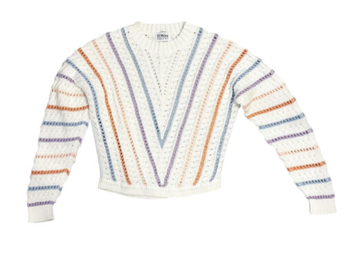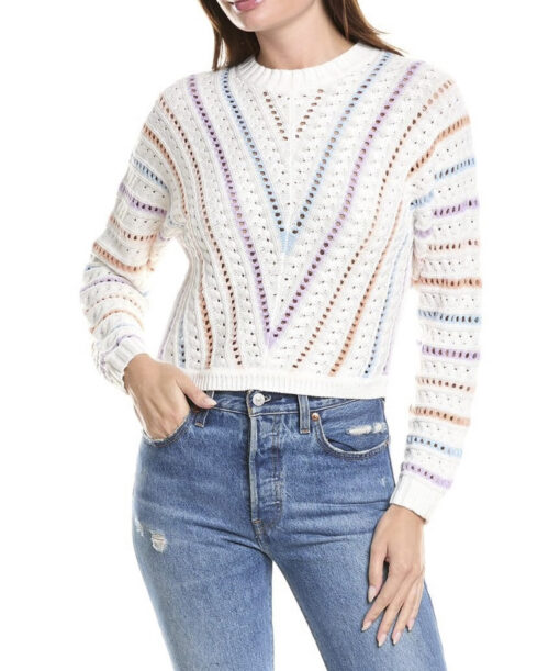 - Style: Pointelle Crochet Knit Crew Neck Pullover Sweater