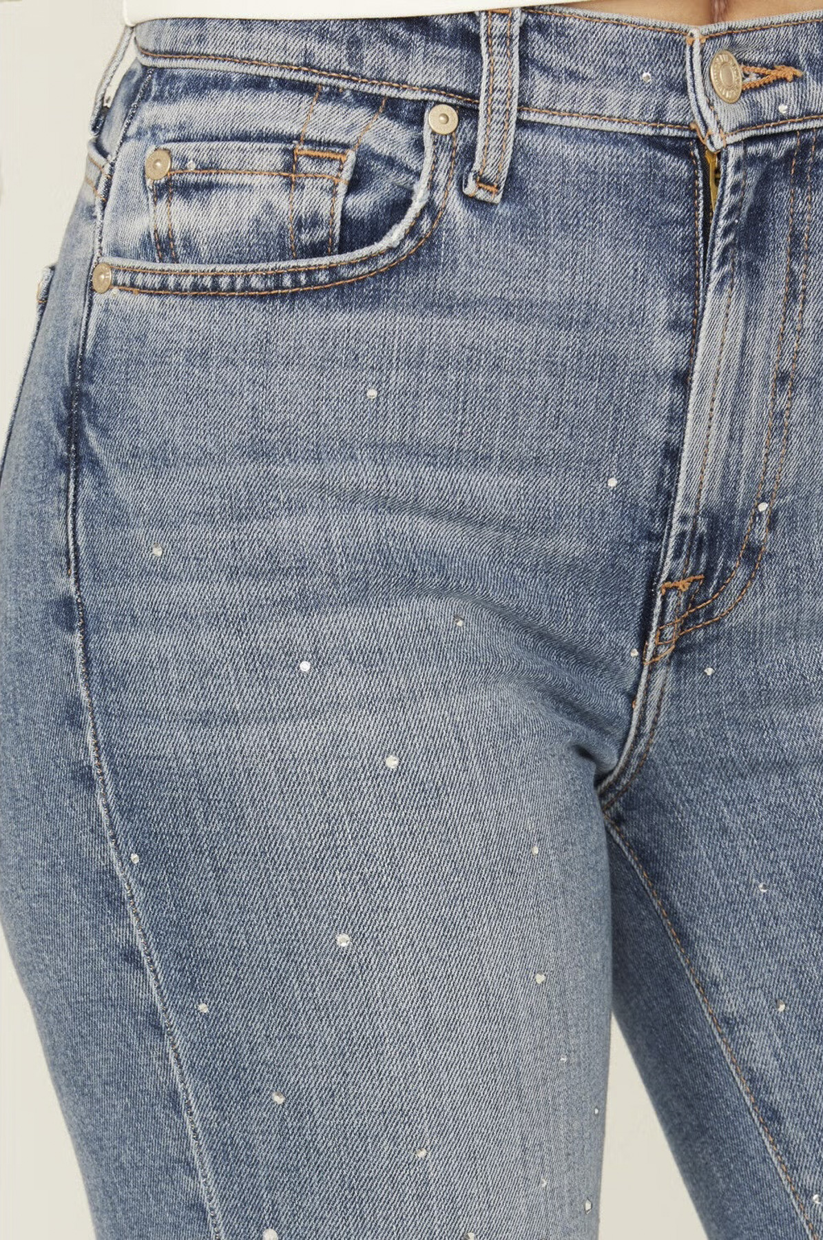 - Style: Logan Stovepipe Crystal High Rise Stretch Straight Jeans