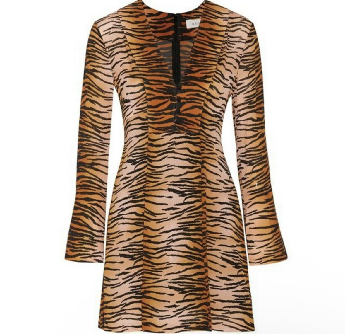 A.L.C. Brinkley Tiger Print Silk V-neck Mini Dress Size 0 New with Tags