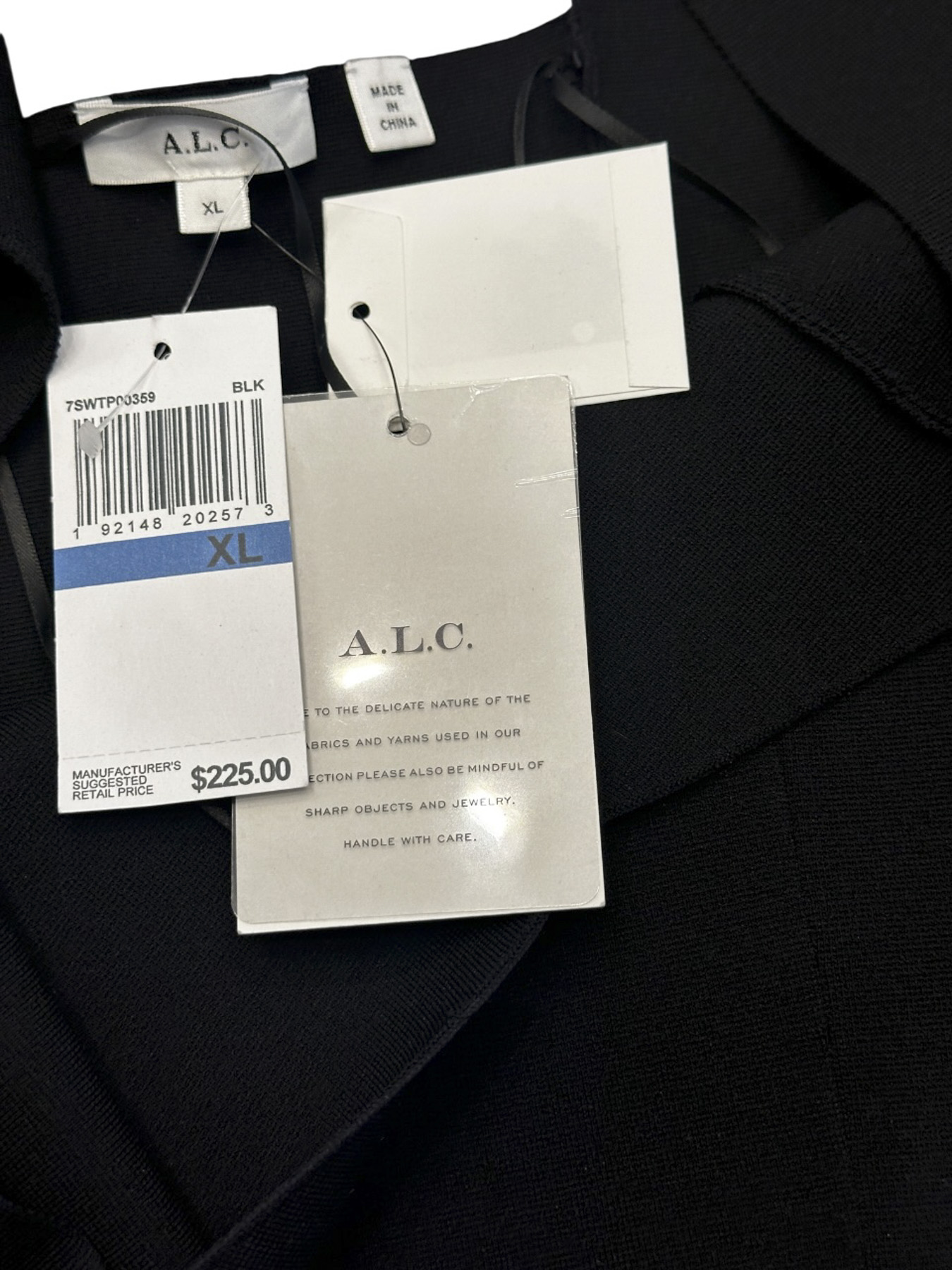 Michelle Mason Black Silk Satin Draped One Sleeve Top Blouse Size 4