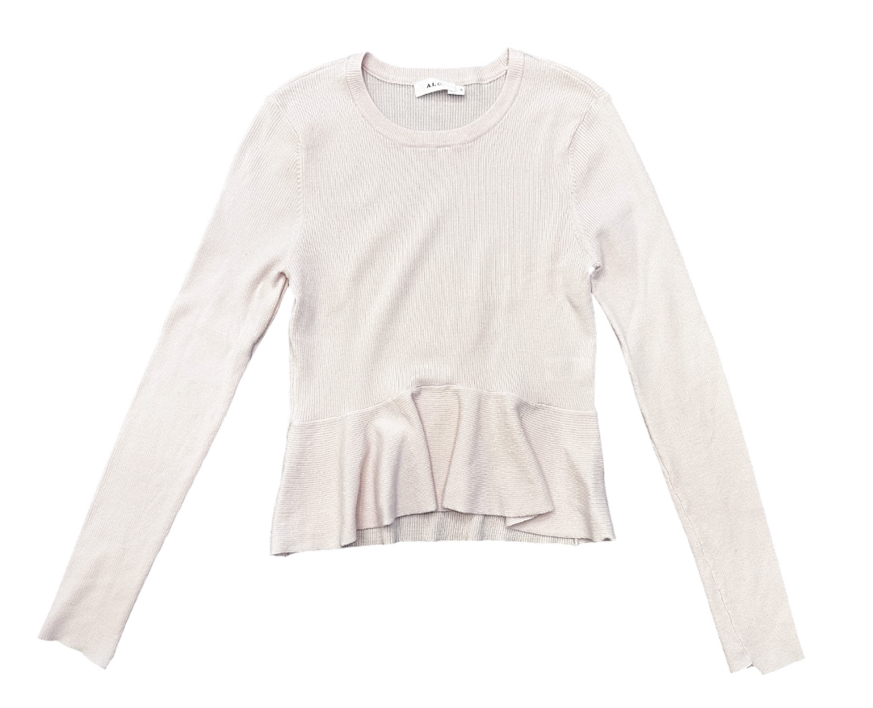 - Style: Pink Wool Ribbed Knit Long Sleeve Peplum Sweater