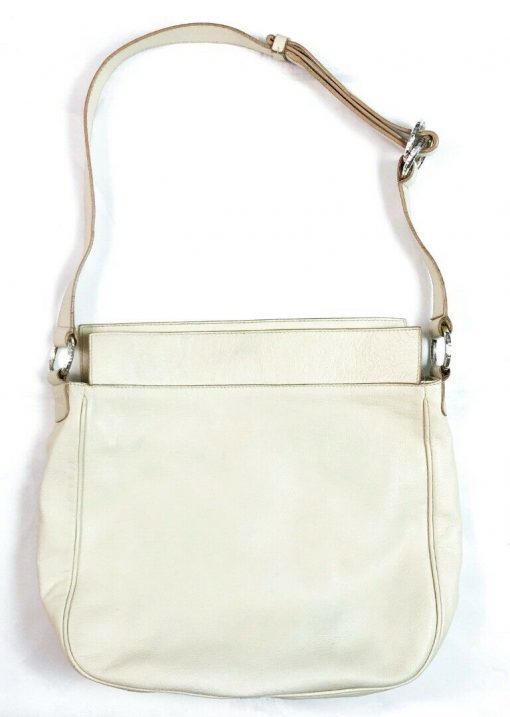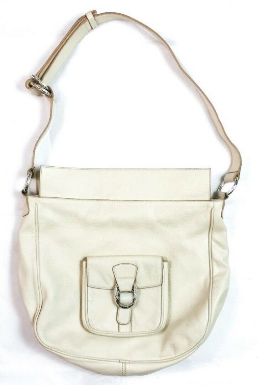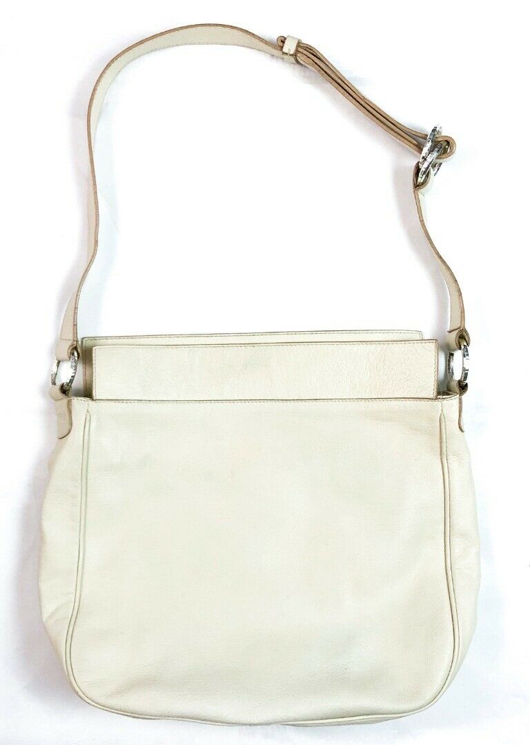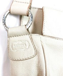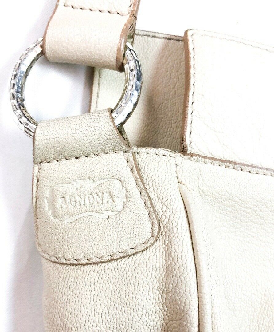 Agnona Italy Beige Ivory Leather Shoulder Tote Bag Purse