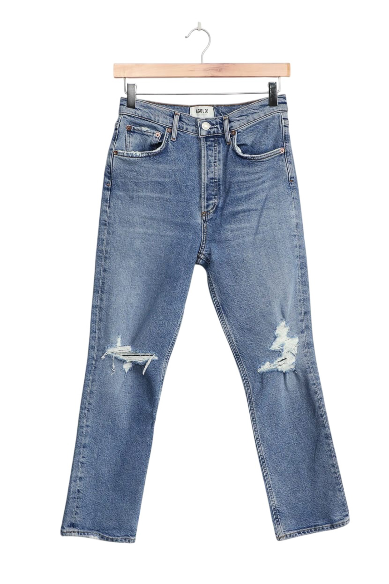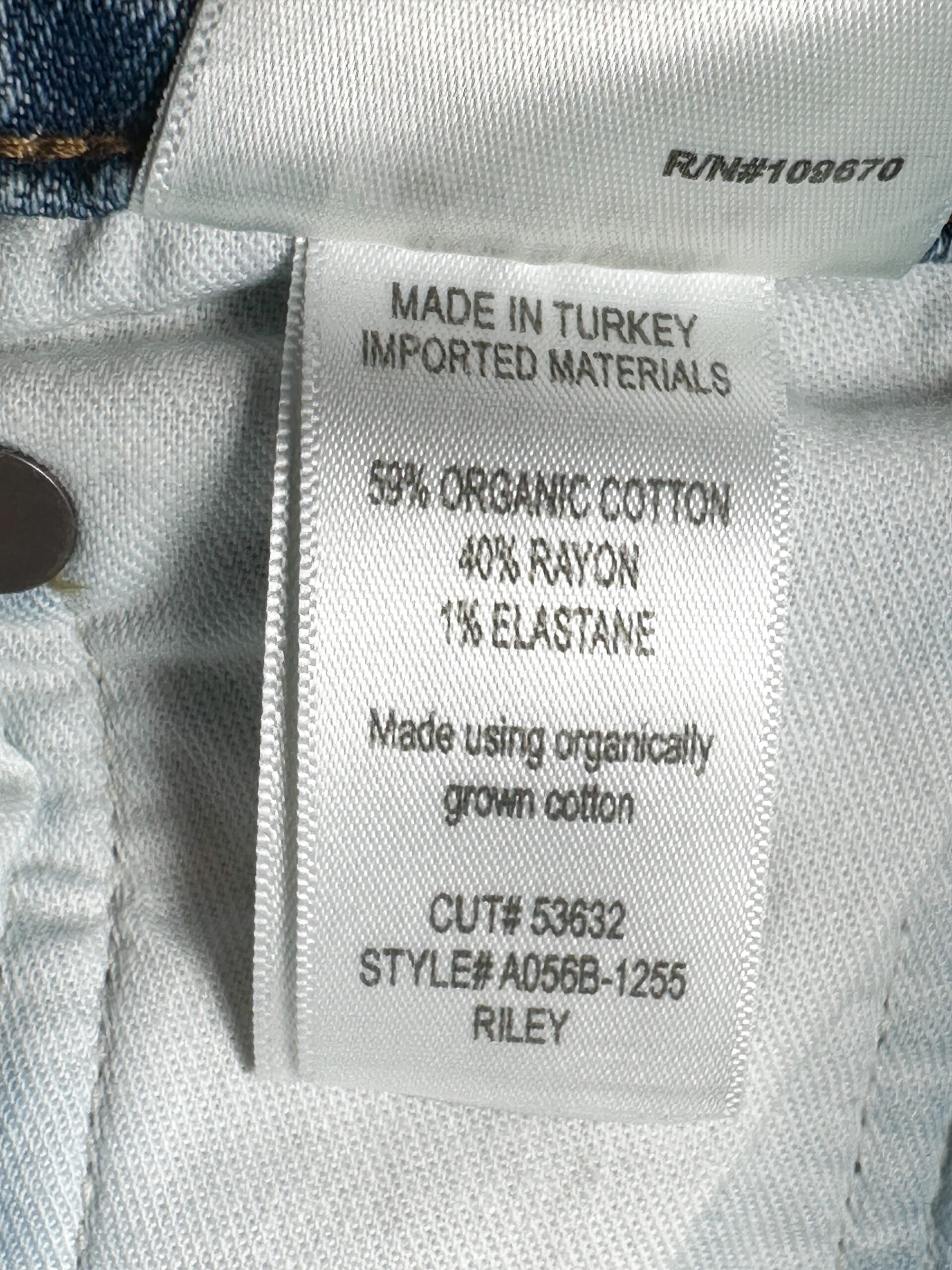 - Style: Riley High Rise Button Fly Straight Crop Whiplash Jeans