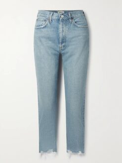 Agolde Riley High Rise Button Fly Straight Leg Crop Haven Wash Jeans Size 27