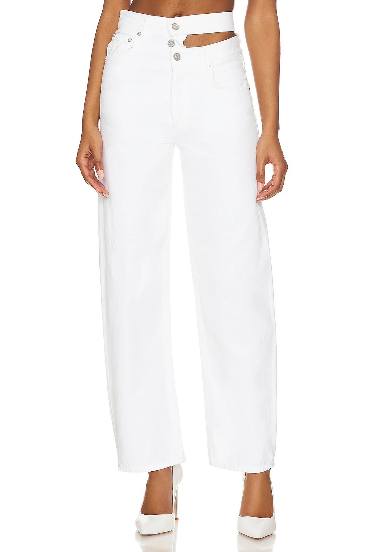 - Style: White Broken Waistband High Rise Wide Leg Jeans
