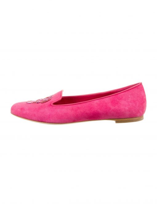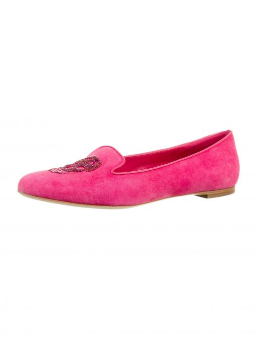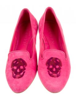 - Style: PINK SUEDE SEQUIN SKULL EMBELLISHED LOAFERS FLATS