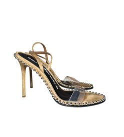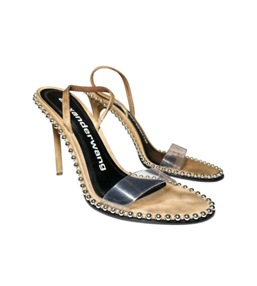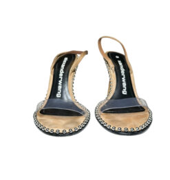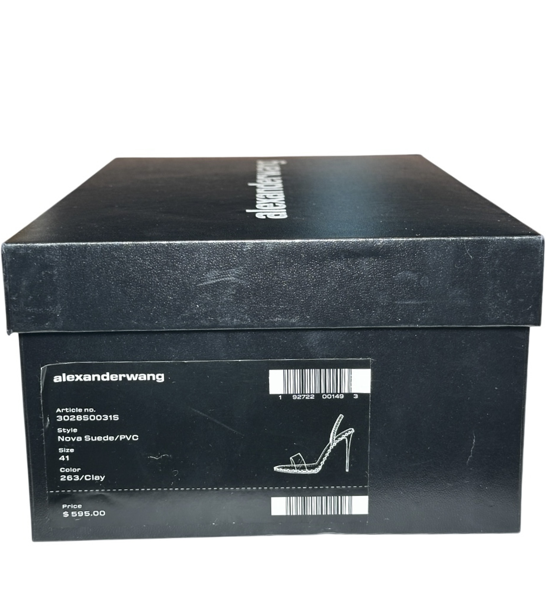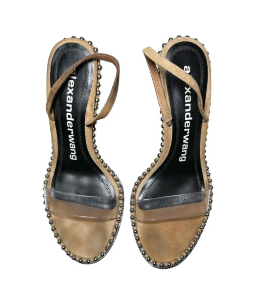 Alexander Wang Nova Brown Studded Suede Slingback PVC Sandals Heels Size 41