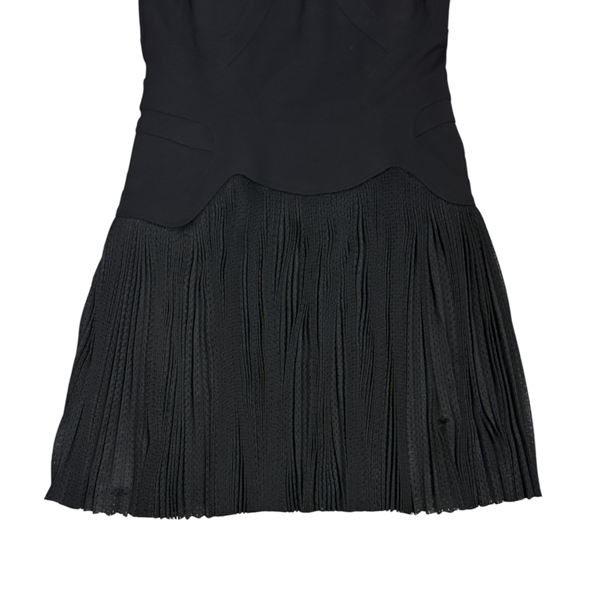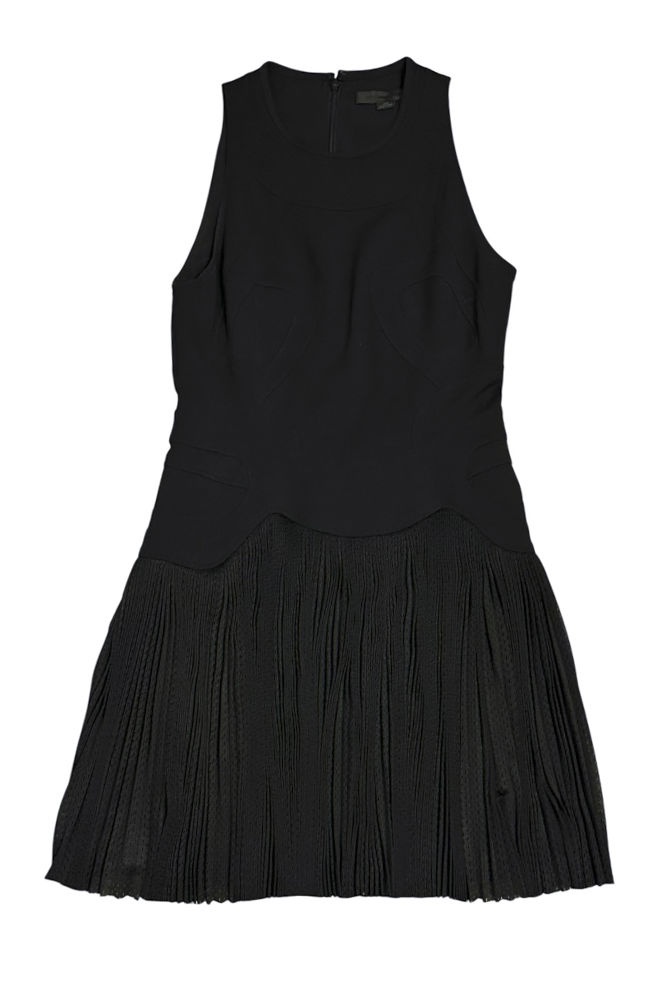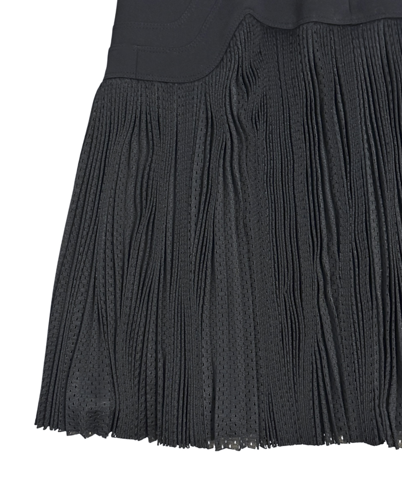 - Style: Runway Black High Neck Sneaker Pleated Mini Dress