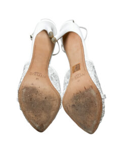 Alexandre Birman Clarita Slim Bridal White Lace Ankle Strap Heels Sandals Size 41