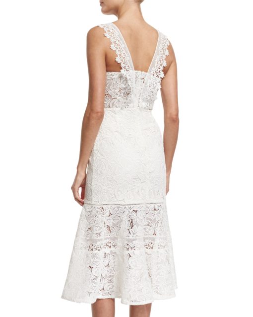 Alexis Bojana White Lace Sleeveless Midi Flounce Dress Size XS