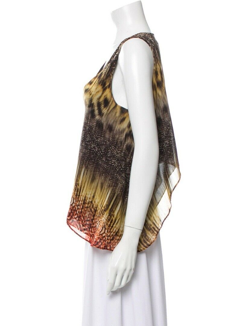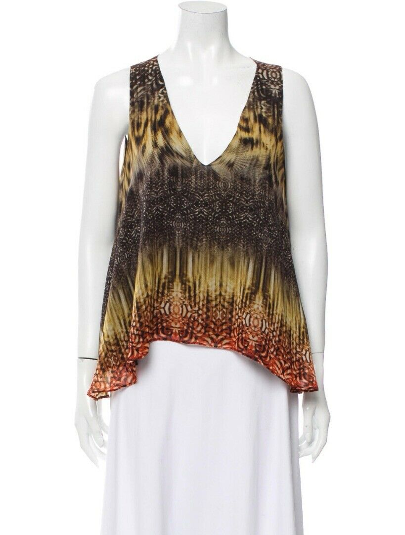 ALEXIS PRINTED SILK SLEEVELESS V-NECK TOP BLOUSE SIZE LARGE