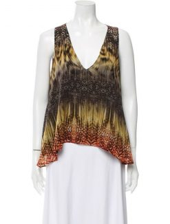 - Style: PRINTED SILK SLEEVELESS V-NECK TOP BLOUSE