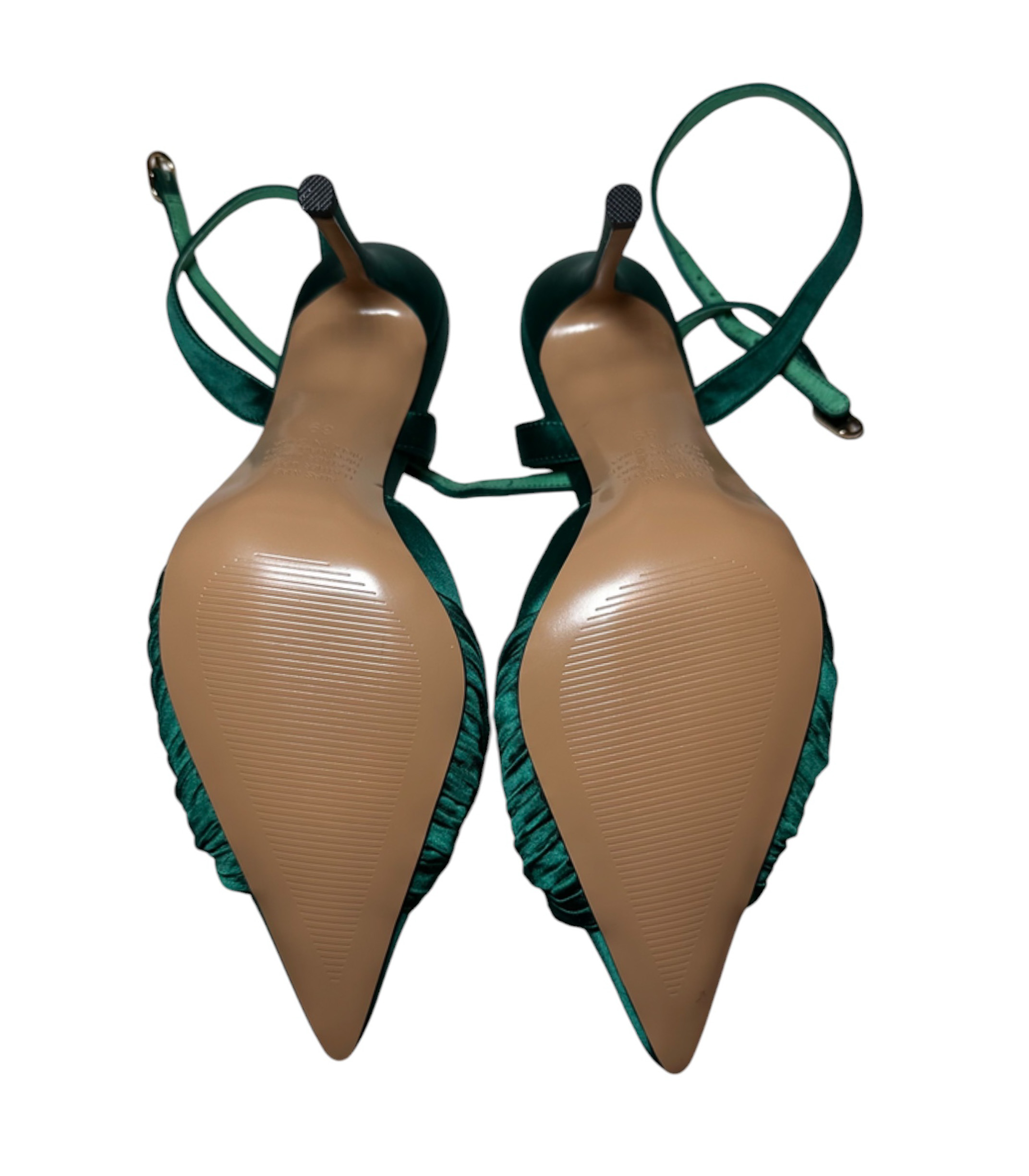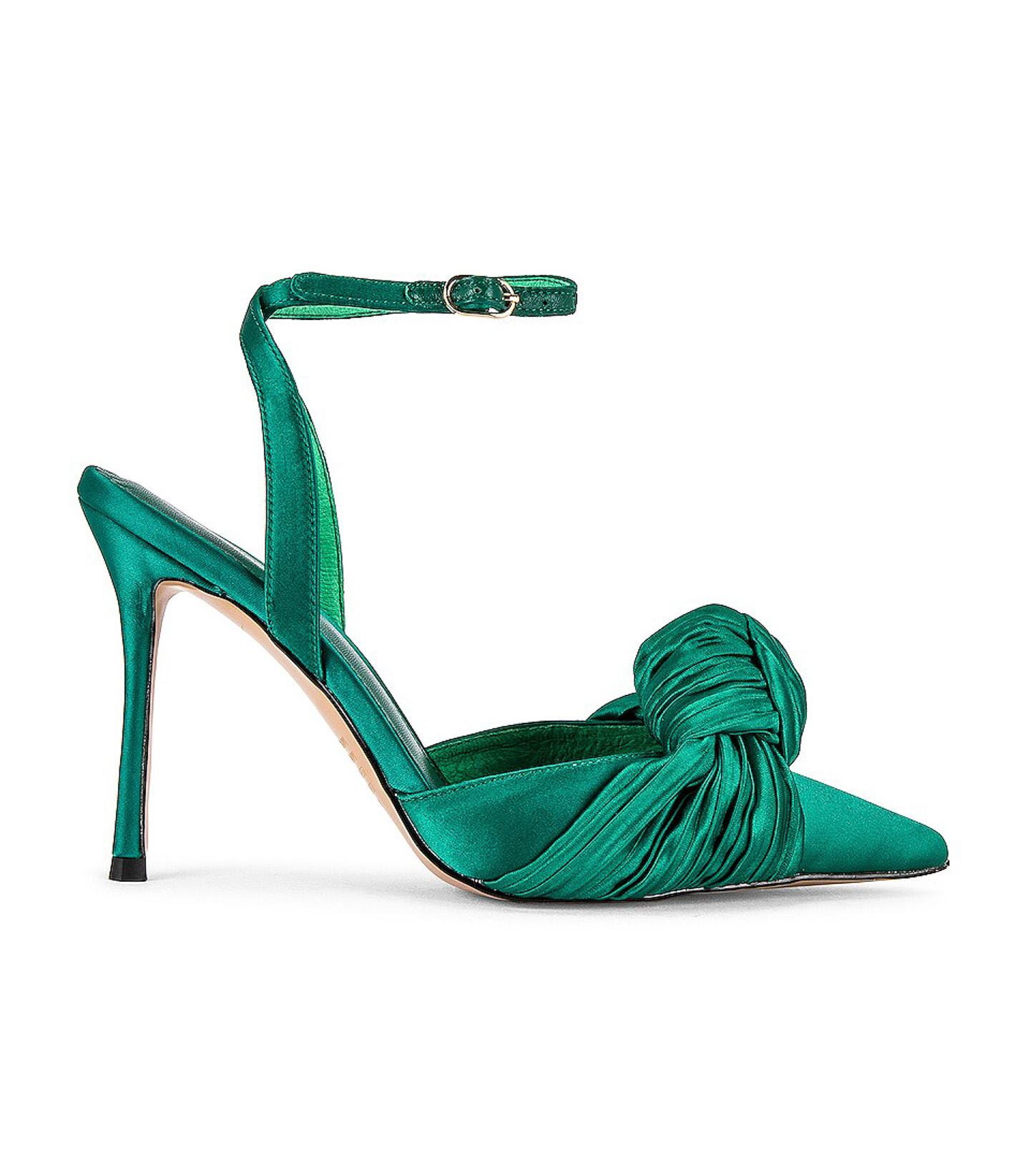 - Style: Bonnie Green Satin Heels Ankle Strap Pumps
