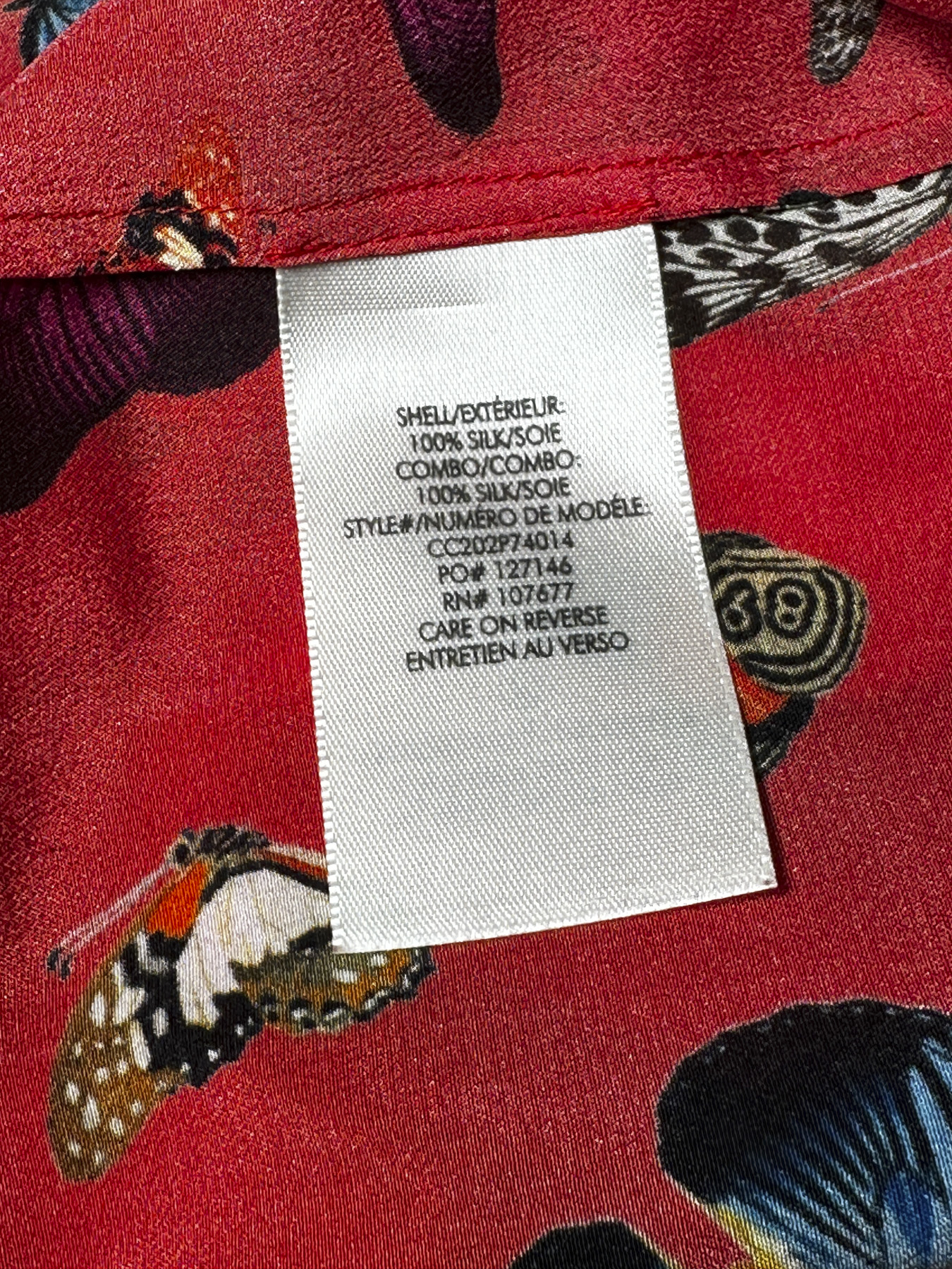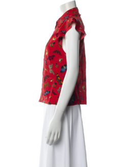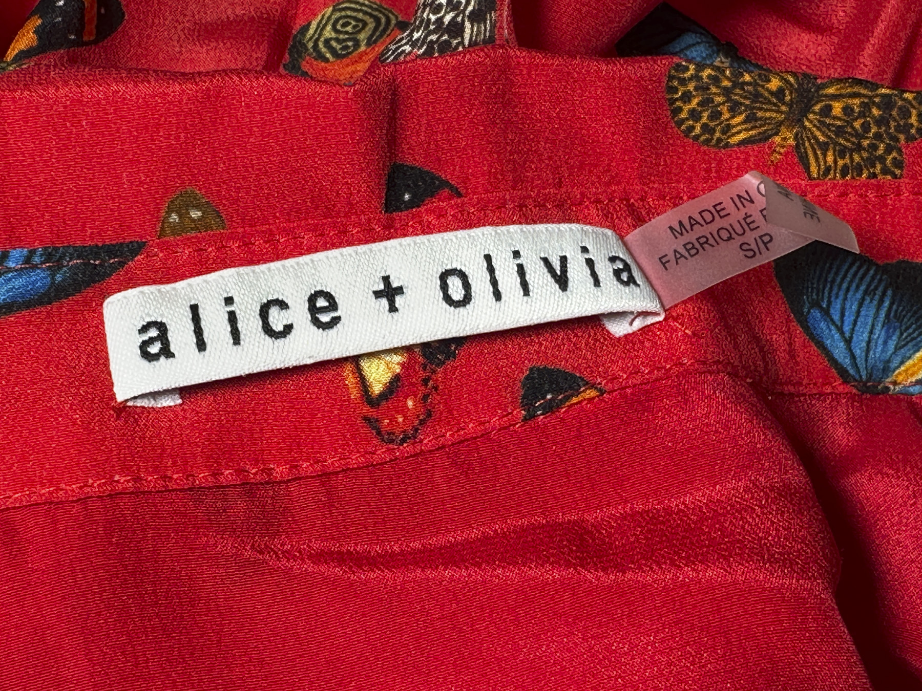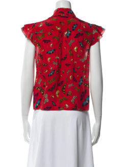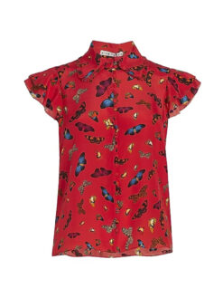 - Style: Martel Red Butterfly Print Silk Top Blouse
