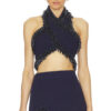 IRO Wolfie Black Crochet Knit Plunging V-Neck Crop Top Blouse Small