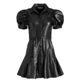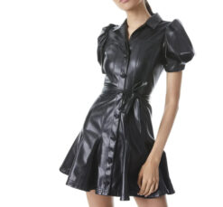 - Style: Ofra Black Vegan Leather Belted Mini Shirt Dress