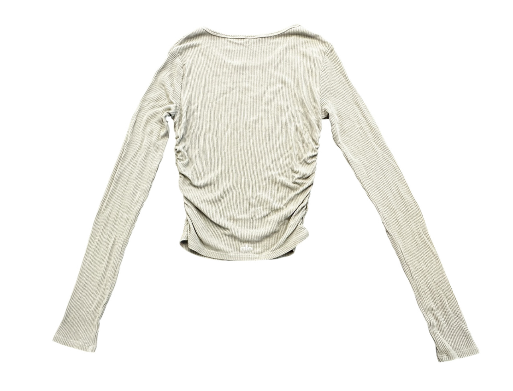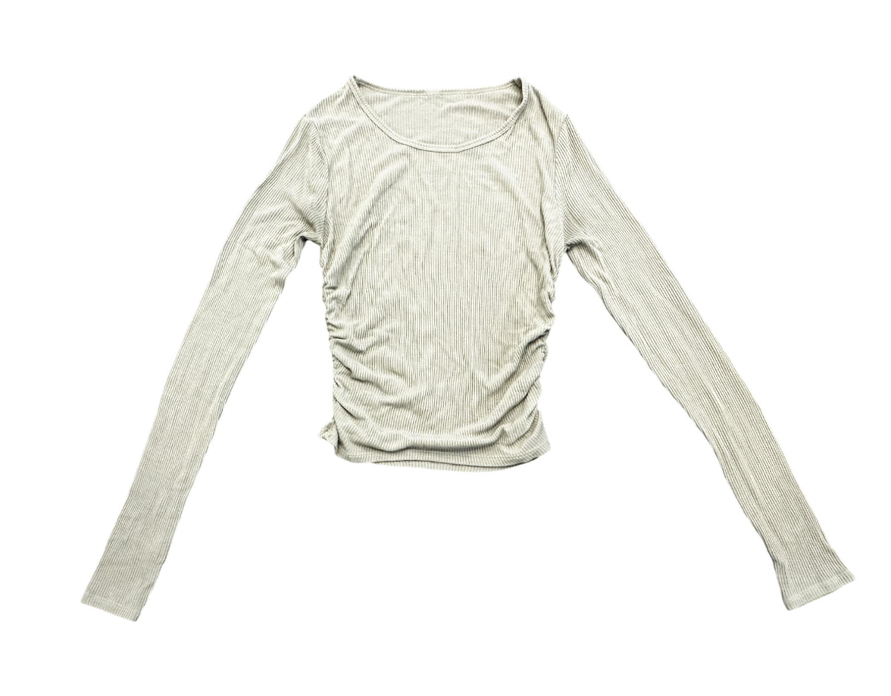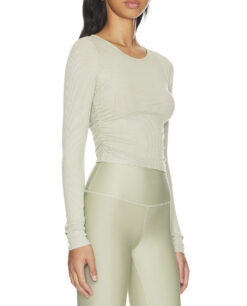 - Style: Gather Light Green Ribbed Long Sleeve Crew Neck Ruched Top