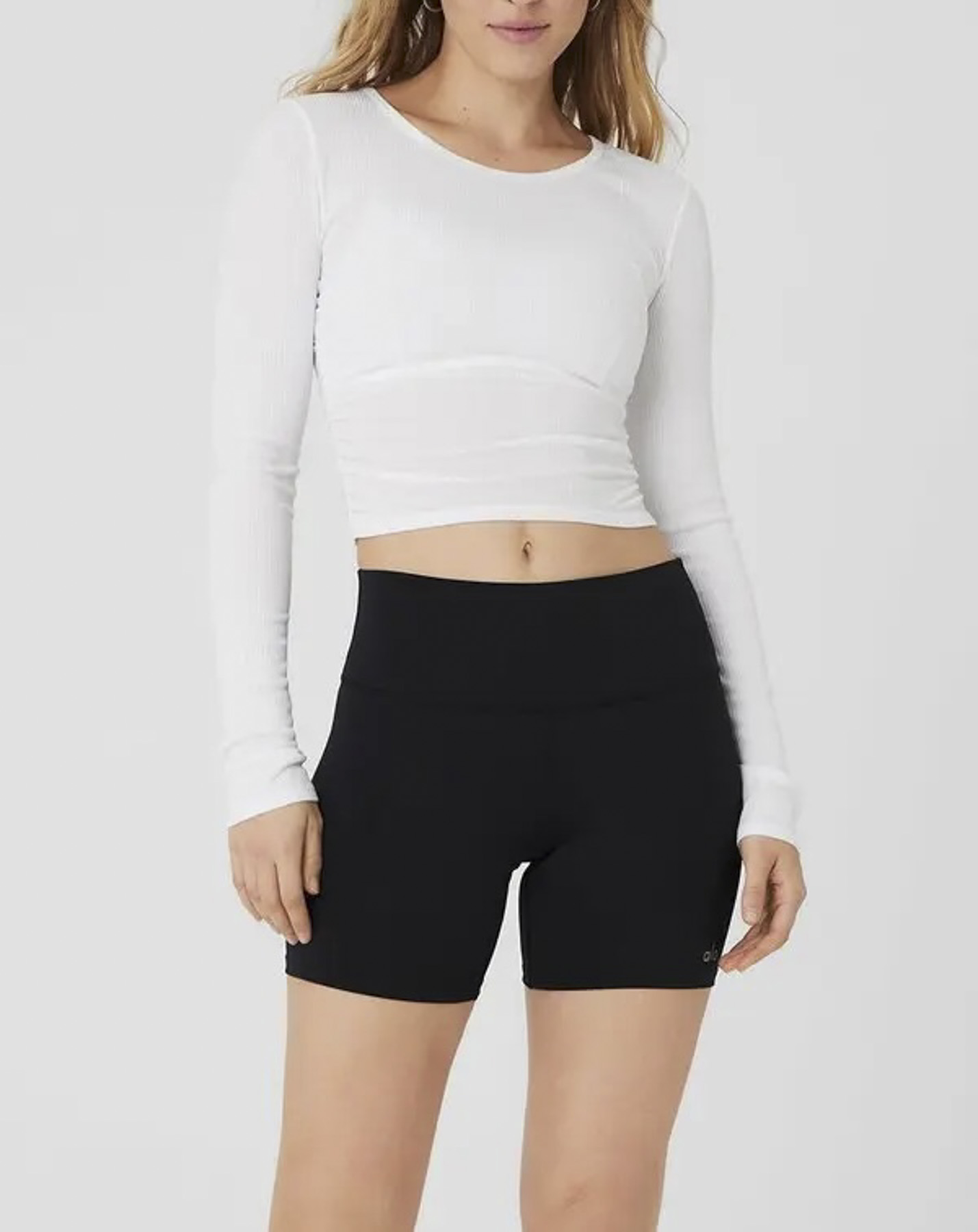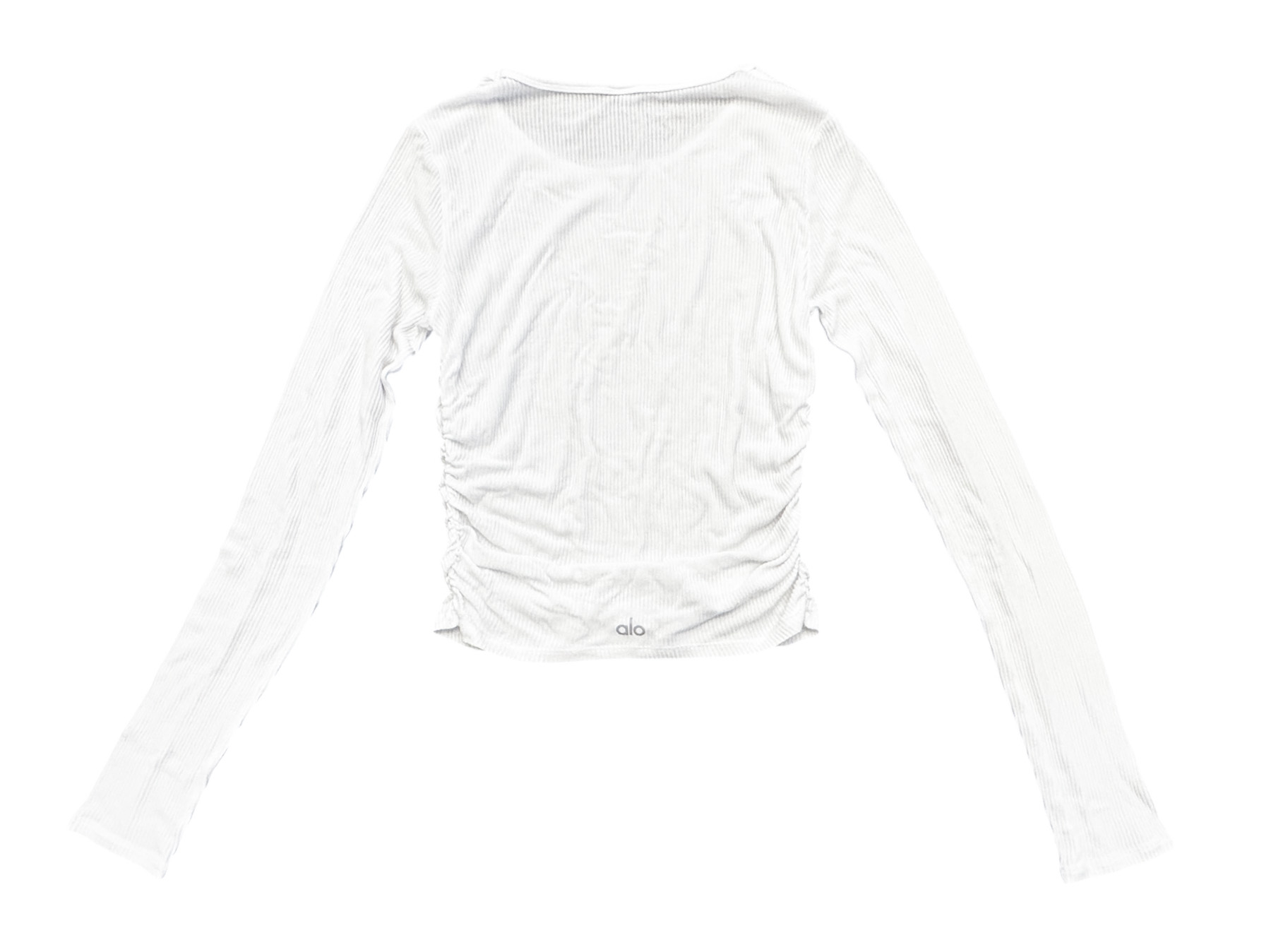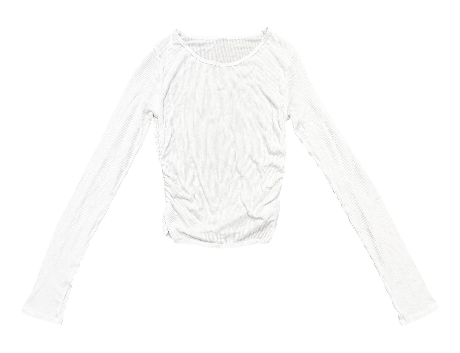 - Style: Gather White Ribbed Long Sleeve Crew Neck Ruched Top