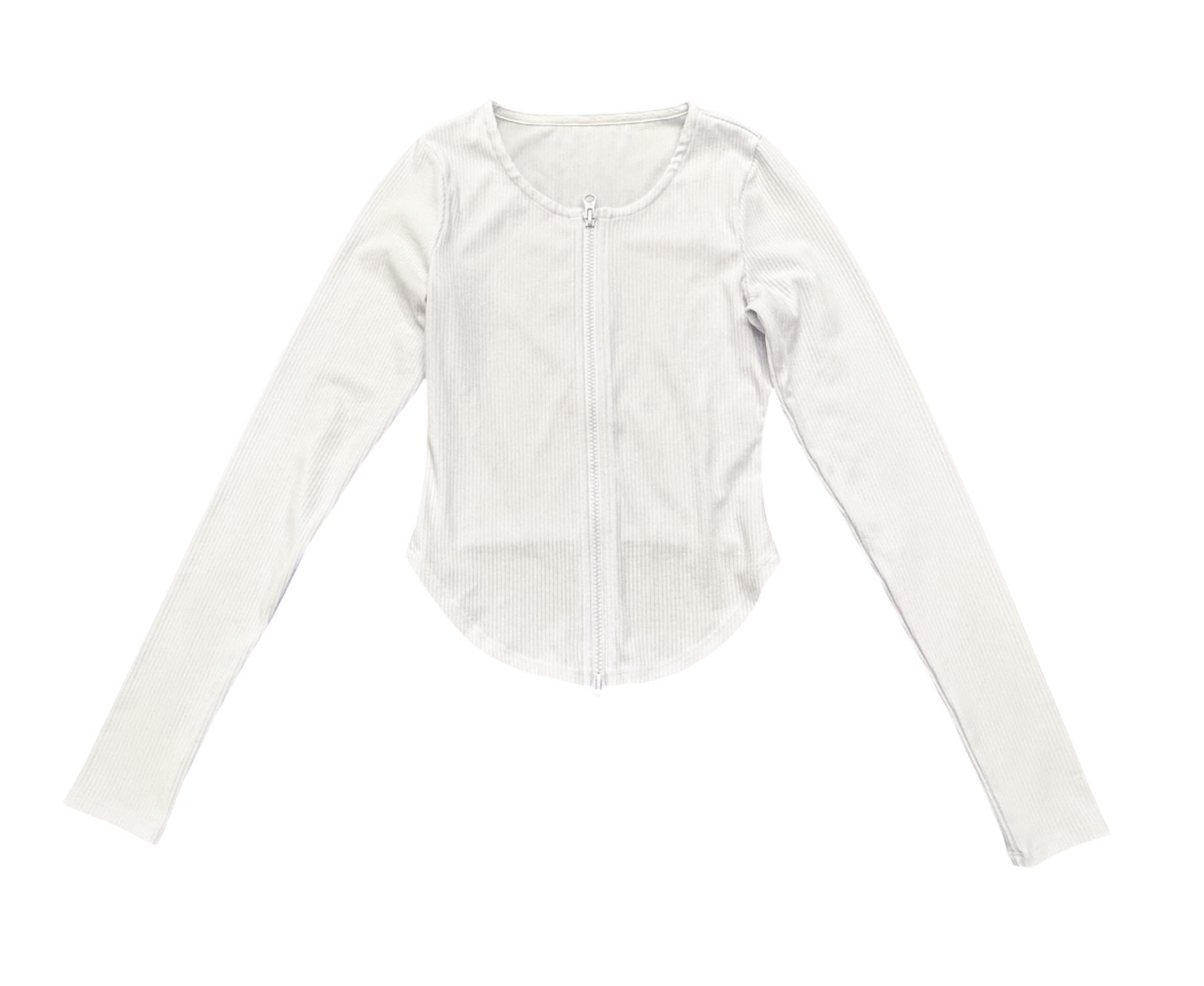 - Style: Stardust White Ribbed Full Zip Long Sleeve Jacket Top