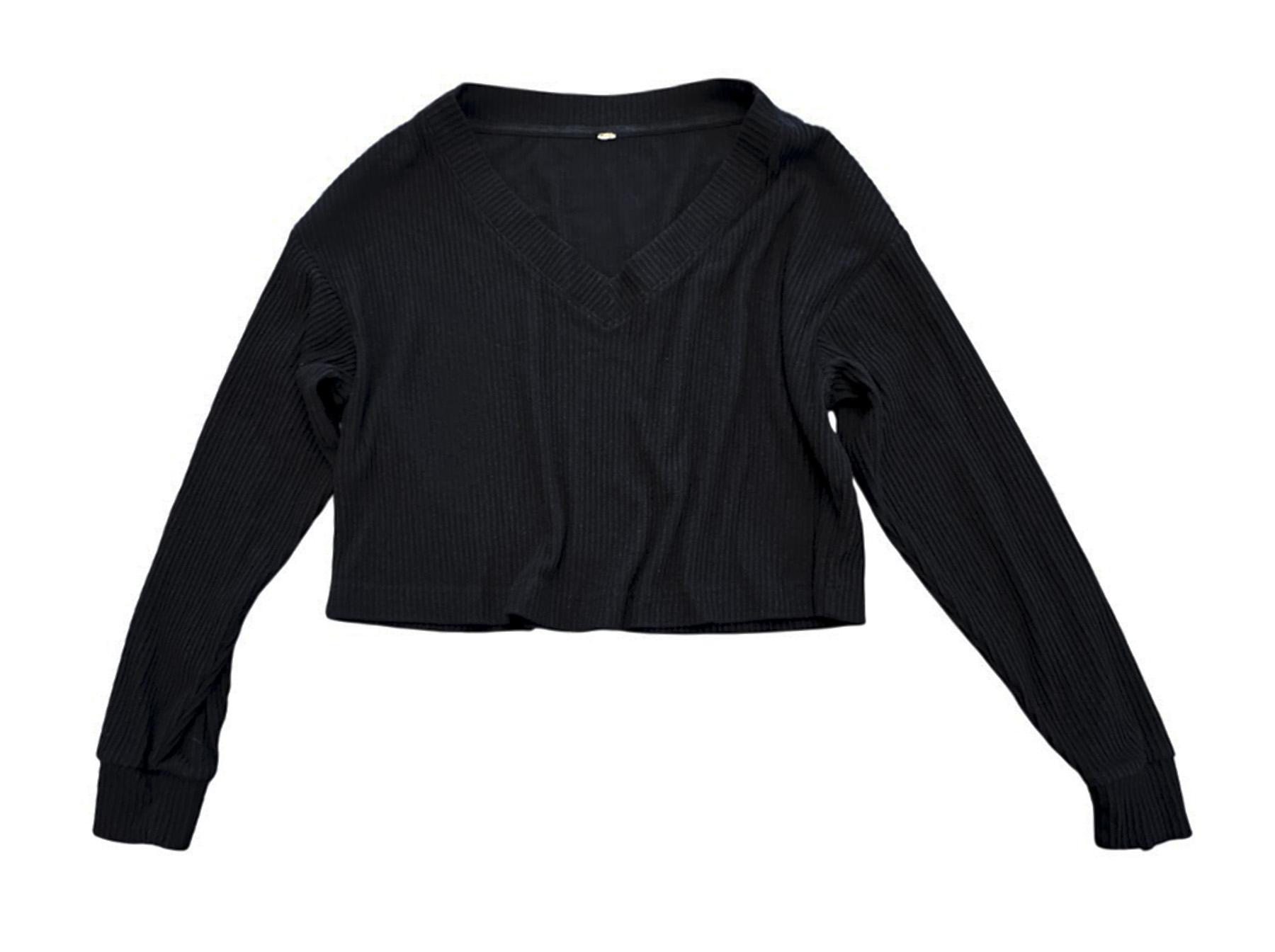 - Style: Muse Ribbed Crop V-Neck Pullover Sweater