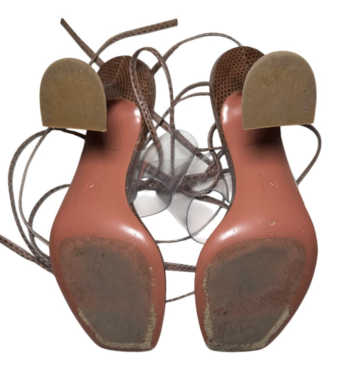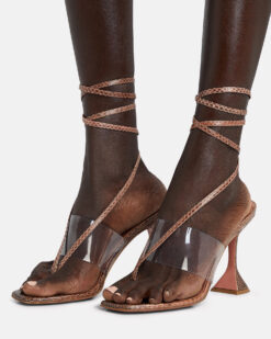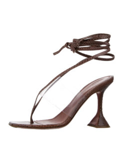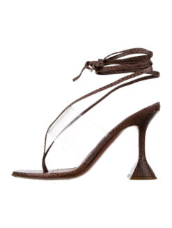 - Style: Zula PVC Thong Glass Lace Up Tie Heels Sandals