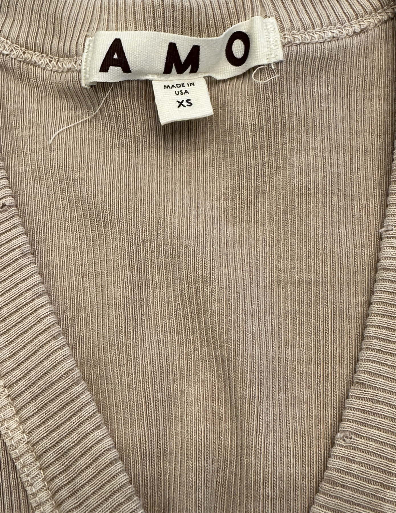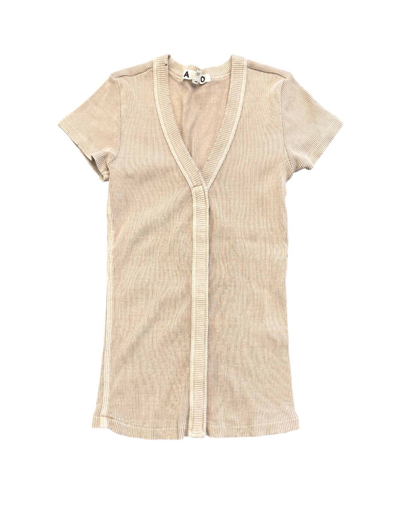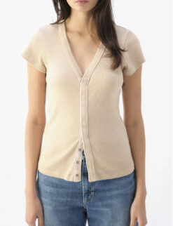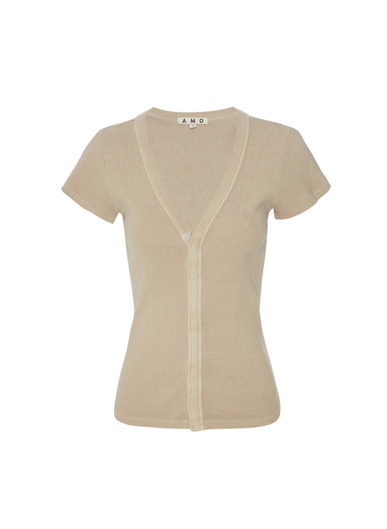 - Style: Amour Camel Rib Cotton Knit V-Neck Short Sleeve Tee Top Blouse