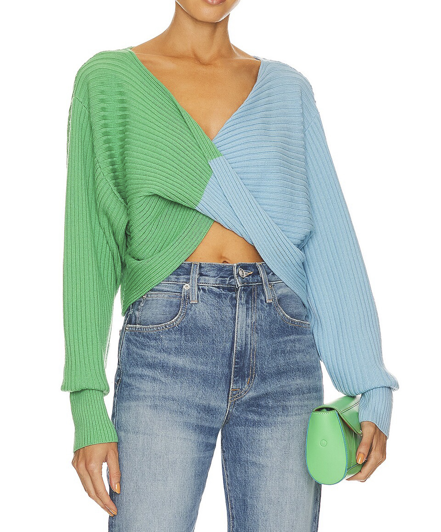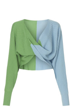 - Style: Cruz Twist Ribbed Wool Knit Draped Sweater