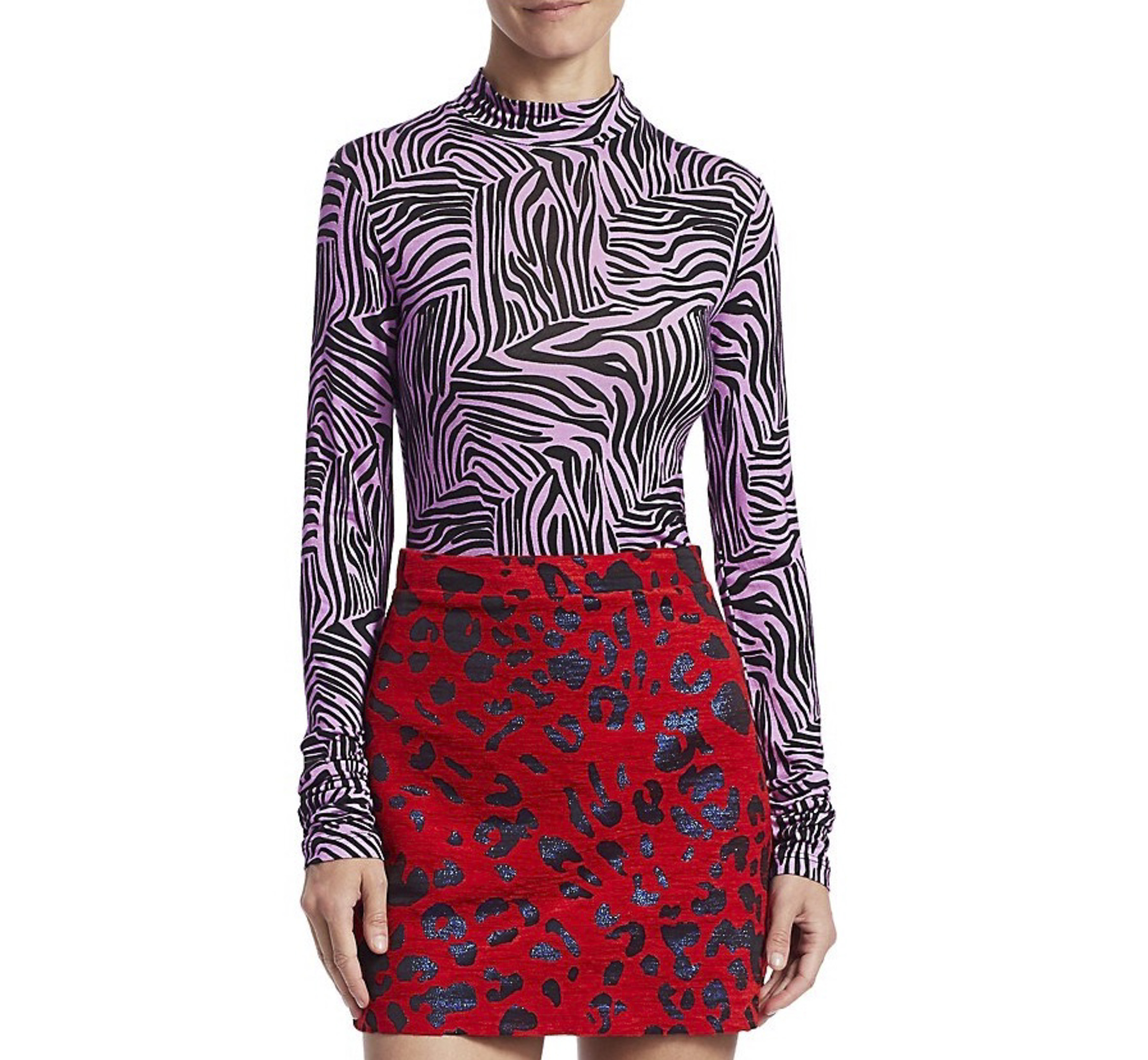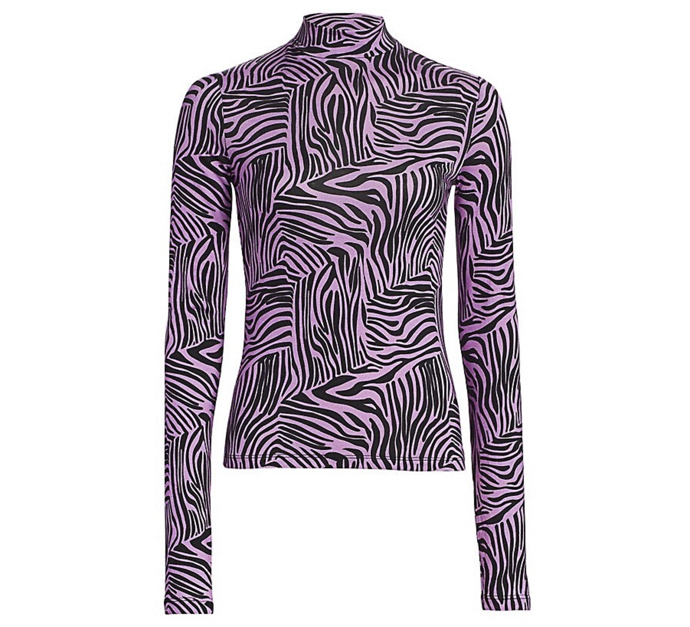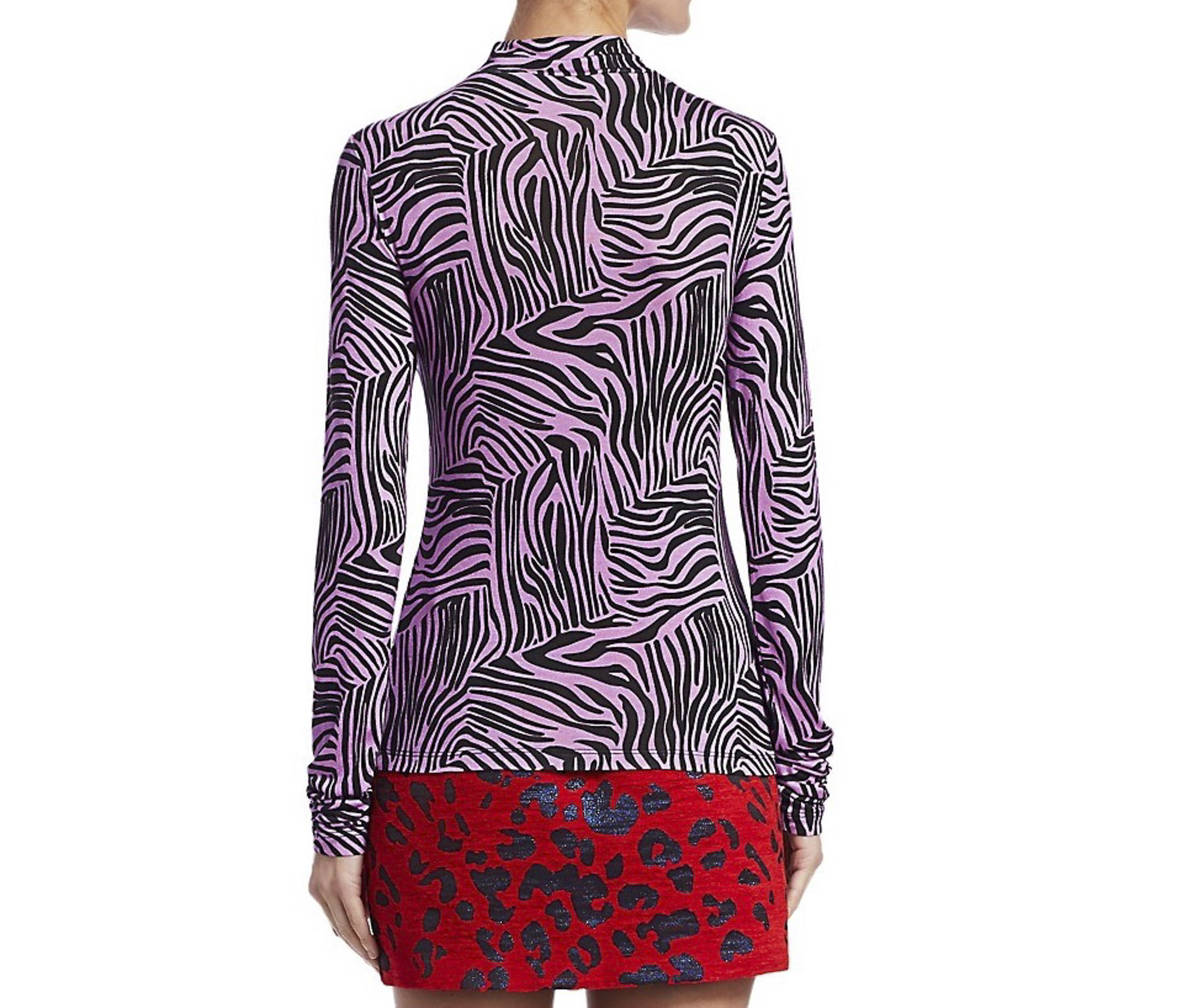 ANDAMANE NEW BETH PURPLE ZEBRA PRINT MOCK NECK TOP BLOUSE SIZE XS